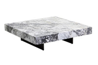 Made of premium polished marble and striking matte black legs, this table will add character and elegance to any living space.